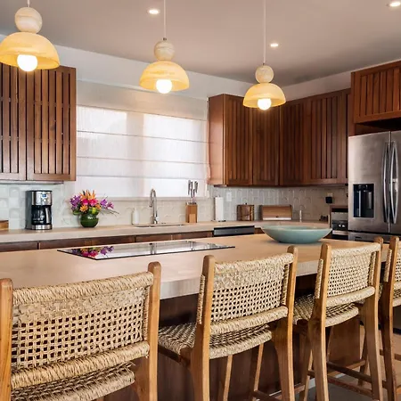 Oceanfront 5Br Villa, Saltwater Pool & Concierge offers a fully furnished kitchen featuring a fridge, an oven, and kitchenware. - ❓
